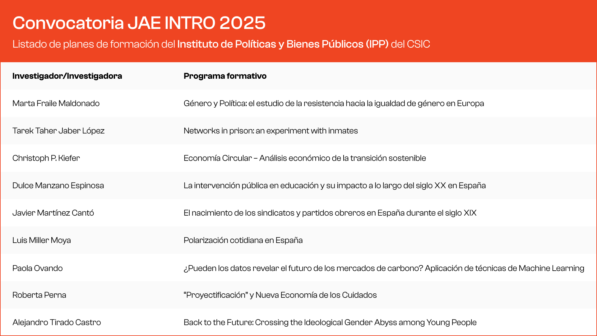 Relación de becari@s del Programa JAE Intro en el IPP