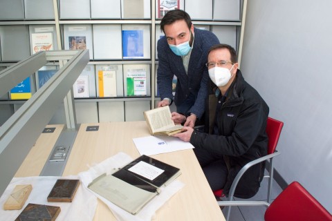 Además, el 17 de febrero recibimos la visita del director de la Fundación Lilly, José Antonio Sacristán que vino acompañado de su gerente, Manuel Guzmán y su coordinadora de proyectos, Cristina Rico. Junto a la directora del CCHS-CSIC, Elea Giménez, realizaron un recorrido por las instalaciones y mantuvieron una reunión de trabajo. El objetivo de la visita fue el acercamiento de las dos instituciones por los intereses comunes que nos unen y para identificar proyectos conjuntos de colaboración. Igualmente, la directora de la biblioteca, Pilar Martínez, les contó la historia de la biblioteca, sus características actuales y les mostró piezas singulares del fondo bibliográfico, como ediciones de especial valor de Elio de Nebrija.