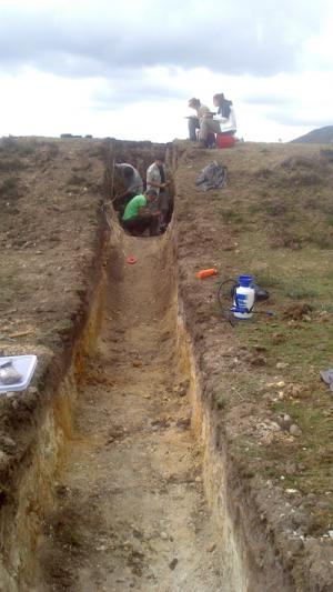 Madrid, 24 de septiembre de 2013.- Un equipo de arqueólogos del grupo de investigación Estructura Social y Territorio – Arqueología del Paisaje (EST-AP) del Instituto de Historia (IH) del CSIC ha llevado a cabo en agosto de este año la primera campaña de trabajos arqueológicos en el campamento militar romano de A Granda das Xarras. El yacimiento se sitúa entre los términos de Candín (León) e Ibias (Asturias) a más de 1300 metros de altitud. Los primeros trabajos han implicado el desbroce de toda la superficie ocupada por el recinto, una prospección sistemática y un pequeño sondeo. Todo ello se ha completado con una topografía detallada del sitio.