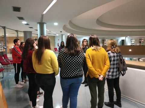 Tras una visita guiada por la Biblioteca Tomás Navarro Tomás durante la que pudieron conocer su colección, formada por más de un millón de ejemplares físicos y electrónicos, nacida como resultado de la fusión de ocho bibliotecas especializadas en diferentes materias de humanidades y ciencias sociales del CSIC en Madrid, fueron recibidos por el antropólogo Pedro Tomé (ILLA, CCHS-CSIC), que pudo conversar con los jóvenes acerca del método trabajo científico y sobre su área de especialización.